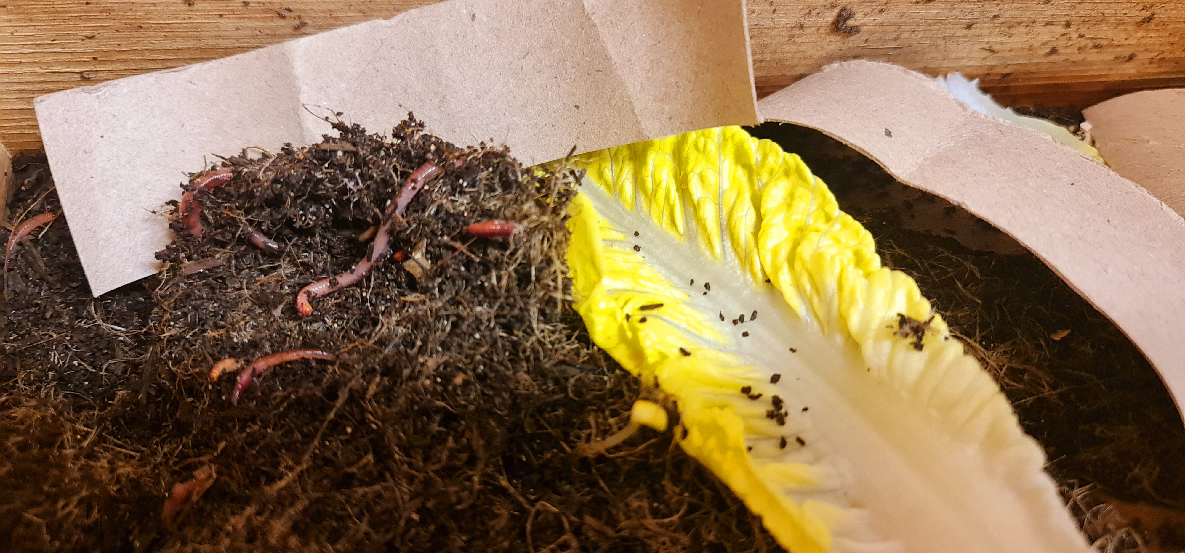 In unserem Wurmkomposter fühlen sich die Würmer richtig wohl. Sie haben es gemütlich in ihrer dunklen, feuchten Erde und können sich dort gut verstecken und bewegen.Die Würmer sind sehr fleißig. Jeden Tag fressen sie kleine Reste von Obst und Gemüse, zum Beispiel Apfelschalen oder Karottenstücke. Dabei machen sie daraus wertvolle Erde.Damit es den Würmern gut geht, kümmern wir uns um sie. Wir achten darauf, dass sie genug zu essen haben, aber nicht zu viel. Die Erde soll immer leicht feucht sein, denn Würmer mögen es nicht zu trocken. Auch frische Luft ist wichtig, damit sie gut atmen können.Ab und zu schauen wir vorsichtig nach ihnen. Dann sehen wir, wie sie sich durch die Erde bewegen und kleine Gänge graben. Das ist spannend!
