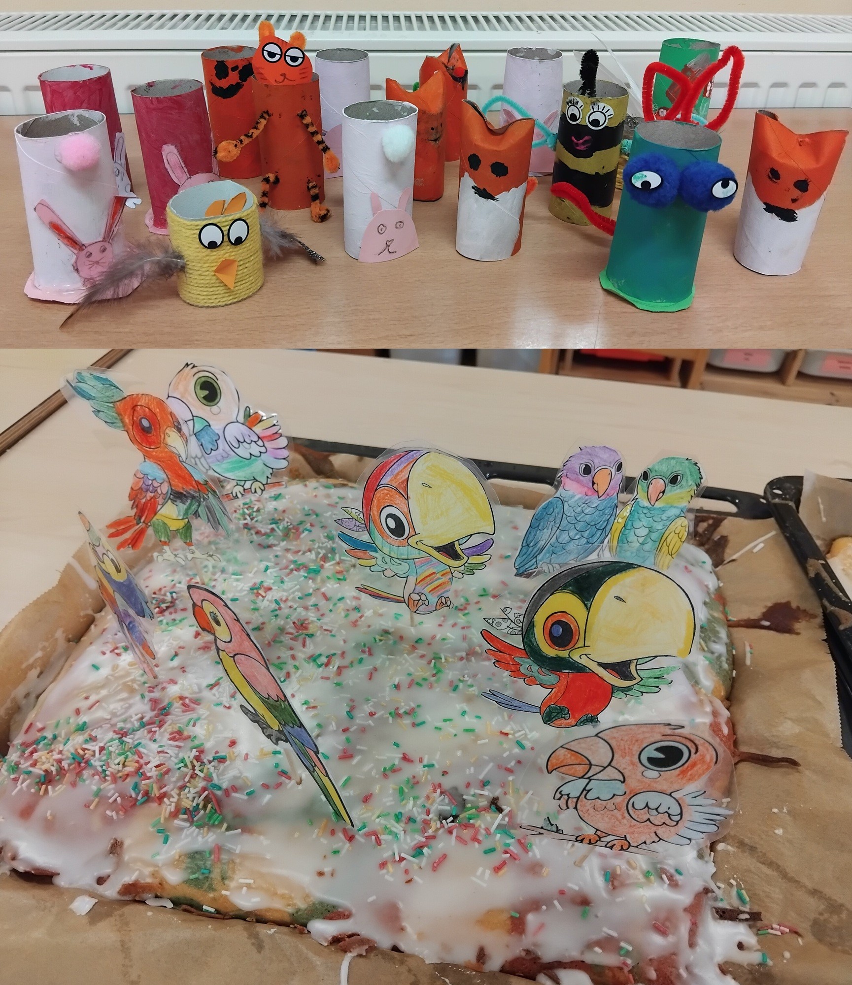 Tiere nehmen in unserem Leben einen großen Platz ein. Viele haben Haustiere Heimtiere, wie etwa Hunde, Katzen, Wellensittiche usw., oder Nutztiere, wie z.B. Schafe, Kaninchen und Hühner. Die einen leisten uns Gesellschaft, die anderen liefern uns Nahrung oder andere nützliche Dinge. Außerdem gibt es viele verschiedene Wildtiere. So oder so, fast jedes Kind hat ein Lieblingstier. Aber woran erkennen wir, welches Tier da vor uns steht? Am Verhalten? Am Aussehen? In der ersten Winterferienwoche beschäftigten wir uns auf spielerische und kreative Weise mit dem Thema Tiere. Mit Hilfe von Schminke verwandelten wir uns gegenseitig in die verschiedensten Tiere. Hauskatzen, Tiger, Leoparden, Hasen, Haie, Dinosaurier, Schmetterlinge, Schnecken und Schlangen bevölkerten unseren Hort. Wir buken einen Kuchen, der so bunt wie ein Papagei war. Er schmeckte lecker! Schlichte Papprollen verwandelten wir in lustige Tiere. Bei all diesen Aktionen achten wir v.a. auf äußerliche Merkmale. Wie sieht etwa eine Katze typischer Weise aus? Woran erkennt man ein Tier noch? An den Bewegungen, am Verhalten? Wir bewegten uns wie Schlangen durch die Turnhalle, tanzten wie Flamingos auf einem Bein. Wie die Hasen schlugen wir Haken, um den Jägern zu entkommen. Bei Herr Wolf, wie spät ist es? gingen wir als Wölfe auf Beutezug. Beim Memory suchten wir das Tierpärchen, das sich gleich bewegte. Was sind typische Verhaltensweisen? Oder schreiben wir Menschen den Tieren bestimmte Charakterzüge zu? Sind alle Schafe lammfromm, alle Füchse listig bzw. durchtrieben und alle Raubtiere jederzeit gefährlich? Als Höhepunkt der Woche entführten uns die Mitarbeiter der Stadtinformation in die Welt von Zoomania. In diesem Film wurden die zugeschriebenen Verhaltensweisen der Tiere in Frage gestellt. Lammfromme und zurückhaltende Schafe wollten die Macht an sich reißen. Die aggressiven Raubtiere wurden zu den gejagten Opfern. Die Harmlosen waren die Bösen, die Gefährlichen die Leidtragenden. Oder waren doch wir Menschen gemeint?