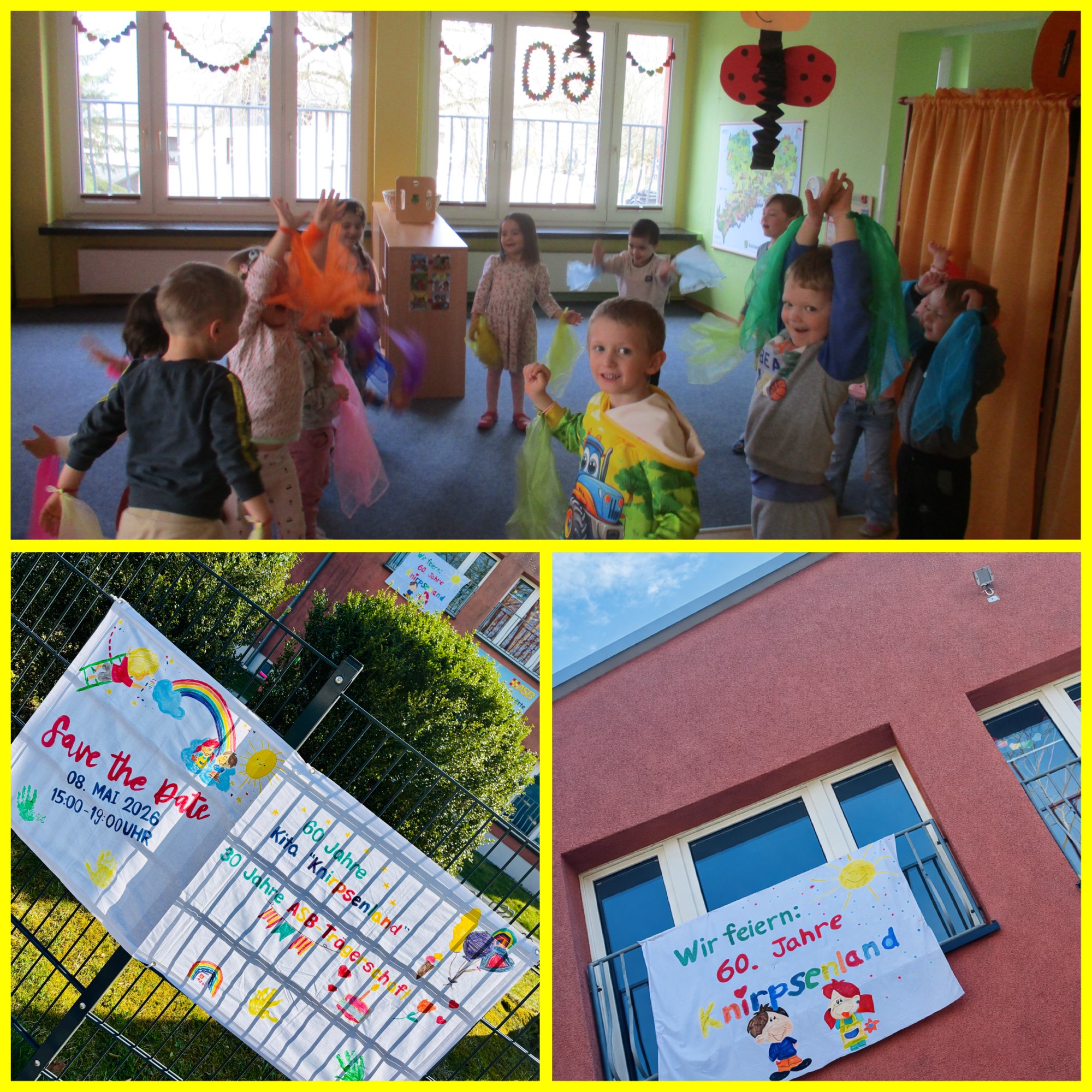 Wir haben schon einmal davon berichtet, aber weil wir so aufgeregt und voller Vorfreude sind berichten wir nochmal darüber. Unser Knirpsenland feiert in diesem Jahr ein ganz besonderes Jubiläum 60 Jahre voller Lachen, Lernen und gemeinsamer Erlebnisse! Kein Wunder also, dass bei uns schon seit Wochen eine fröhliche Aufregung zu spüren ist. Unsere Großen und Kleinen Knirpse sind mit viel Begeisterung dabei, alles für diesen besonderen Tag vorzubereiten.In den Gruppenräumen wird eifrig gebastelt Bunte Girlanden, liebevoll gestaltete Dekorationen und kleine Kunstwerke entstehen in den Händen unserer Knirpse. Gleichzeitig erklingen überall fröhliche Lieder, denn für das große Festprogramm wird fleißig geübt. Auch im Büro laufen die Vorbereitungen auf Hochtouren das Telefon klingelt häufiger als sonst, denn es gibt viel zu organisieren.Ein wichtiger Punkt auf unserer To-Do-Liste steht noch bevor der gemeinsame Frühjahrsputz mit den Eltern. In den nächsten Tagen wollen wir zusammen den Garten auf Vordermann bringen, Beete verschönern, Spielbereiche herrichten und alles festlich vorbereiten. Wir freuen uns schon jetzt auf viele helfende Hände, damit unser Außengelände pünktlich zum Jubiläum in frischem Glanz erstrahlt.Natürlich darf auch das Üben für den großen Auftritt nicht fehlen Unsere Regenbogenknirpse studieren mit viel Freude und Einsatz einen tollen Tanz ein. Die Aufregung steigt und die Vorfreude, diesen endlich vor Publikum präsentieren zu dürfen, ist riesig!Am Festtag selbst wartet ein buntes Programm auf euch Freut euch aufspannende Unterhaltung mit einem Magier, auf lustige Aktionen wie der Twister Fuchsi, der sicher für viele strahlende Kinderaugen sorgen wird. Dazu gibt es weitere zahlreiche Angebote und leckere kulinarische Angebote für Groß und Klein.Wir laden euch herzlich ein, mit uns zu feiern!Wann 08. MaiUhrzeit 1500 1900 UhrWir freuen uns auf euch!Eure Knirpse und das Team vom Knirpsenland. |