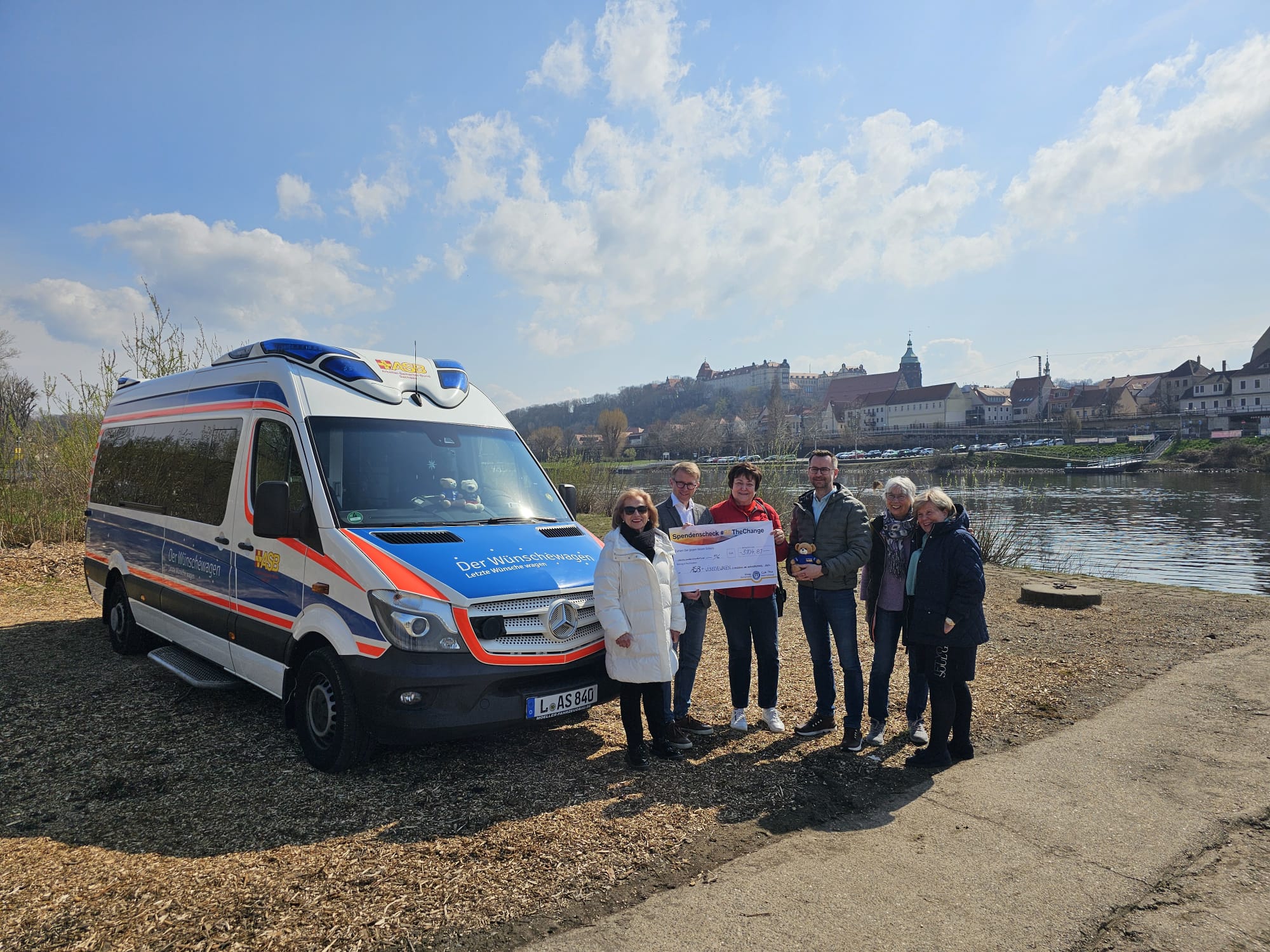 Die Vereine ?Soroptimist International Club Pirna und ?Rotary Club-Pirna Sächsische Schweiz initiierten in der Weihnachtszeit 2024 wiederholt eine ?Weihnachtslotterie, deren Erträge wohltätigen Projekten zugute kommen soll. Dieses Mal durfte sich das Team des ASB-Wünschewagens Sachsen über eine beeindruckende Spende in Höhe von 3.104,81 Euro freuen. Der Geschäftsführer des ASB Ortsverbandes NeustadtSachsen e.V., Herr Alexander Penther, stellte das Herzensprojekt vorab vor. Heute nahm er, gemeinsam mit dem extra angereisten Wünschewagenteam aus Leipzig, den symbolischen Spendenscheck in Empfang. Wir bedanken uns ganz herzlich für diese großzügige Unterstützung!